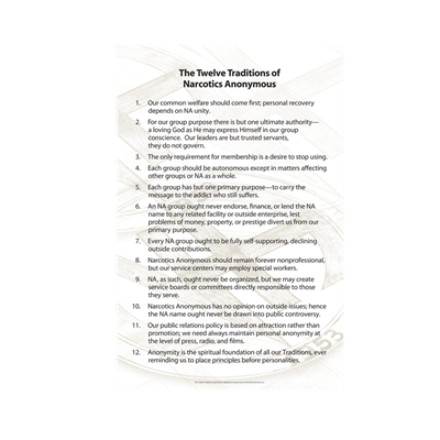 Twelve Traditions poster (23″ x 35″) for use in NA meetings, events, etc.